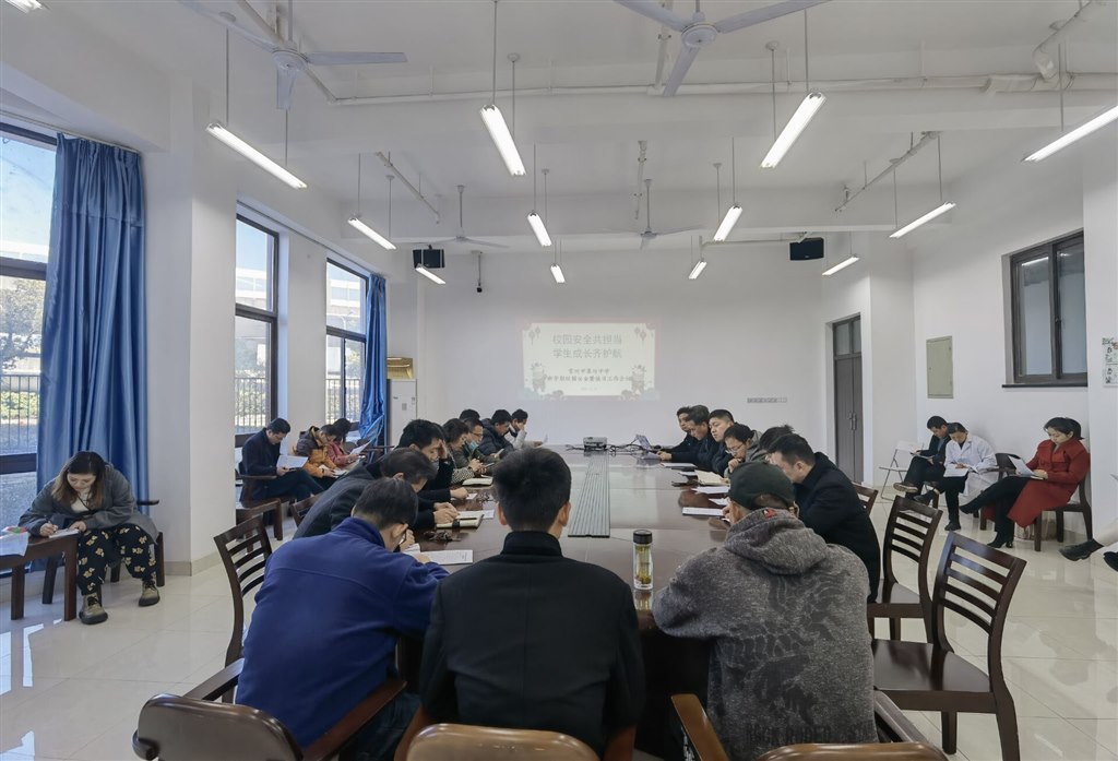 守护校园安全,护航学生成长,2月21日下午学校召开了新学期校园安全暨值日工作会议,全体行政值日人员、年级组长、校园义务安全员和校领导参加了会议。 分管学校安全的屠国斌副校长主持会议并发言,他说开学第一天召开校园安全工作会议体现了学校对安全工作的高度重视,安全责任重于泰山,今年学校男教工加入了校园值日的队伍,齐抓共管,群防群控,壮大了校园安保的力量。随后他就新学期校园值日的分工要求进行了部署。 丁文黎副校长也在会议上指出,构建学校安全共同体联盟,既是校园安全工作的需要也是学校德育工作的需要,希望男教工们做好表率,全情投入,共同守护校园安全,培养学生良好品质。 陈校长最后发言,他从工作开展的背景、意义、要求三个层面和在座的教工进行了交流。他说我们的工作是教育对学校的要求,是立德树人的需要,是学校争创新优质学校的需要,也是学校未来发展的长期需要。他说人人都是义务安全员,人人也都是德育工作者,通过我们的行动来筑牢师生健康安全的生命线,让学生拥有高雅的气质,高贵的品格。希望大家能够思想高度重视,行动积极主动,明确分工,明确职责,发扬“三牛”“精神,主动承担责任,守护学校的安全。 为平安勿以其小而不为,管安全勿以其小而不管。本次会议的召开,进一步明确了新学期校园安全工作的目标和任务,增强了教工安全责任意识和防护意识,有力地维护了校园的安全与稳定。
