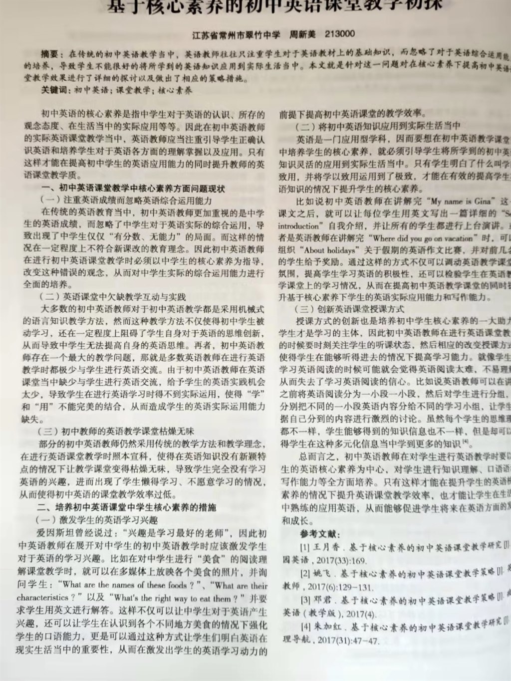 课题论文——周新美《基于核心素养的初中英语课堂教学初探》