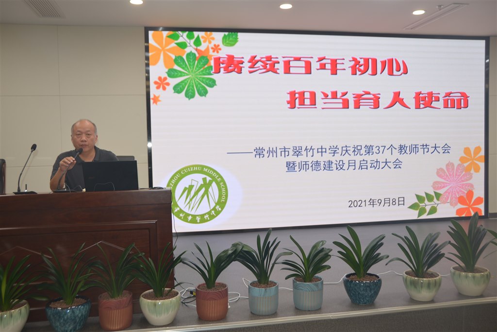 百年初心不移,肩负育人使命。在第三十七个教师节即将来临之际,98日下午,常州市翠竹中学召开庆祝第三十七个教师节教工大会师德建设月启动会会议由校工会朱江主席、教师发展处陈丽主任主持。