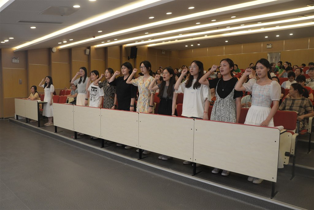 新竹高于旧竹枝,全凭老干为扶持。新的一学年中,学校教师群体又迎来了新鲜的血液,为了更好地帮扶青年教师,又有一批经验教师与青年教师结成了师徒关系。本着自愿和推荐的原则,本学年学校共结对了14对教学师徒,陈主任宣布了本学年教学师徒结对的名单。新徒弟代表张滢钰老师发言,并带领全体青年教师宣誓。铮铮誓言中,是对教育教学的责任与担当。
