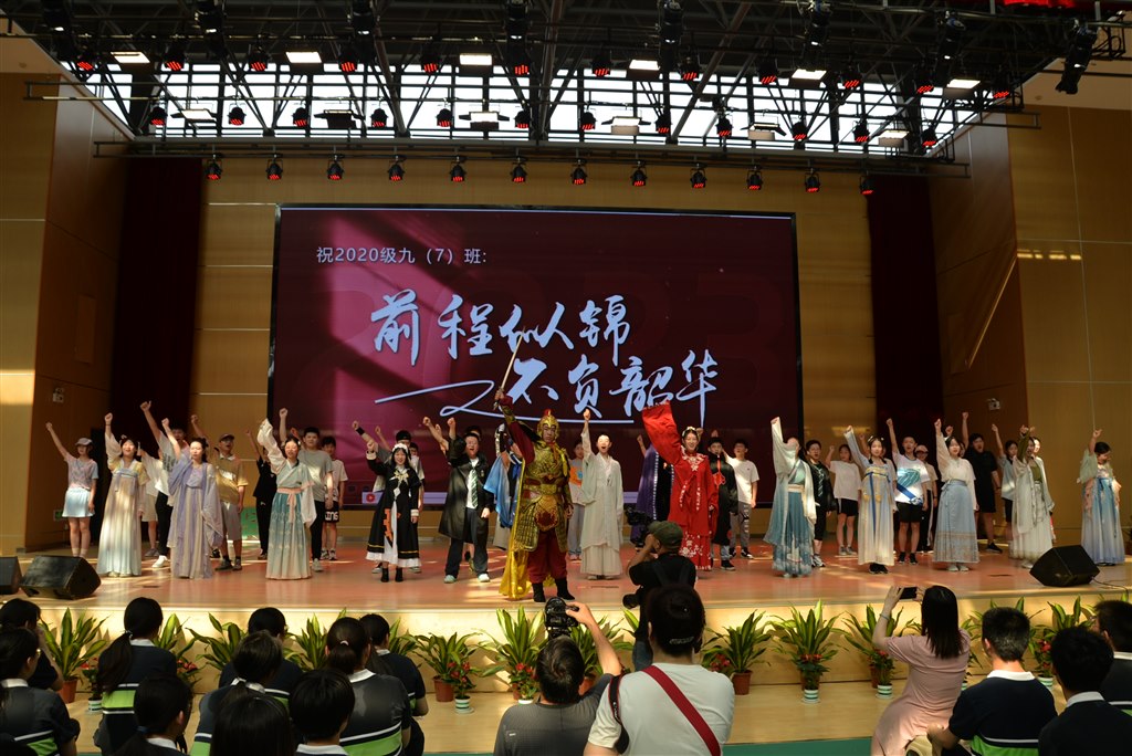 六月,炙热盛夏,流光溢彩; 六月,碧草斜阳,桃李芬芳; 六月,骊歌轻响,更向远方。 2023年6月29日,是告别与祝福的日子,是欢笑与泪水的日子,更是再回首、再出发的日子。 青春纪念,满眼星辰皆如愿 起舞展才艺,热情活力的舞蹈将毕业典礼的气氛点燃。 视频忆往昔,点滴温馨的画面让同学们沉浸美好之中。 走秀显风姿,自信大方的仪态把竹形清韵展现得淋漓尽致。 翻开青春的画卷,回想我们的故事,从自主预习到自主复习,从hi, story到history,从青涩陌生到熟悉默契,从课堂的专注聆听到考场的奋笔疾书,从跑快点,要迟到了,到走慢点,以后见不到了……每一帧画面都将青春录入,师生情、同学意,历历在目,犹如昨日。岁月匆匆,但感动常在,回忆永存。 最美遇见,满怀感激诉衷情 遇见翠中,是缘分,是心之所向,是无悔的选择。 天涯海角有尽处,只有师恩无穷期。师恩难忘意深浓,桃李人间茂万丛。各班学生代表执笔写下回忆的书信,记录美好的校园,以朗诵《我们毕业了》向翠中和恩师们表达感谢。 再华丽的辞藻道不尽对母校的感激,同学们用气势如虹的武术表演《惊鸿游龙最少年》为毕业典礼增添别样的色彩。 家长代表林先生上台致辞,他细数孩子在翠中的成长,感恩翠中的栽培,感恩老师们的敬业,感恩同学们的友爱,并寄语全体学子。 润物无声,丝丝竹韵育桃李 三年师生情,今昔恨别离。满堂祝福语,只赠学子行。伴着音乐,大屏幕上播放着九年级全体任课老师的视频,课堂上他们是睿智的长者,课后他们是敬业的园丁,而此刻他们是送君千里终须一别的“守家人”。老班们为毕业生们送上临别寄语。未来,无论你们身处何方、志在何处,翠中永远都是你温暖的家,老师们永远都在这里等你们凯旋。 学生们以舞蹈《青春纪念册》感恩翠中人,致敬翠中人,告别翠中人! 未来可期,海阔天空任高飞 鹏北海,凤朝阳。又携书剑路茫茫。关心和陪伴大家三年的陈校长为2023届毕业生们送上毕业寄语,感叹相逢之缘,期盼同学们在漫漫书海中挖呀挖,种初心的种子,牢记五竹精神,弦歌不辍,一路芳华。 最后,毕业典礼在合唱《懂你》中落下帷幕,母校懂你们的辛苦,懂你们的努力,懂你们的优秀,你们也懂得母校的深情。 2023届翠中毕业生的故事,始于金秋,终于盛夏。 母校在翠竹新村128号饱含深情地目送每一位翠中人奔赴美好前程,也期盼与你们再次相逢。 祝翠中2023届全体同学们金榜题名,前程似锦! 撰稿:卞婧珏 拍摄:田盈、罗珍会 审核:王爱晖