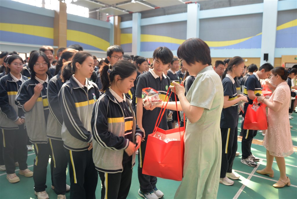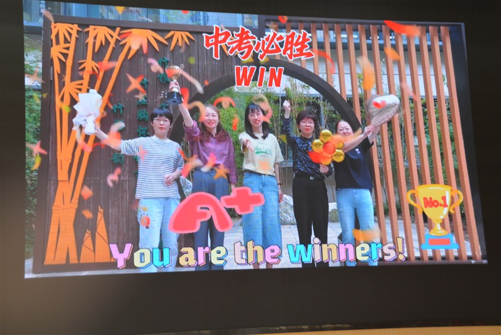 六月,是夏天的热烈,是青春的热血,是梦想花开的季节。 九年级学子奋笔疾书,日夜兼程,奔赴下一站星辰大海。 一场场悄然而至的惊喜,纷至沓来。 神秘的晚餐 温馨的快闪 公告栏的一周菜单,从来是同学们驻足期待的热门话题。而这周更是令人好奇不已。 什么“神秘晚餐”?周五傍晚,随着铃声响起,九年级的同学们蜂拥出教室门,迫不及待地打开餐盒。“哇撒~这是什么?”精致的餐盘上,摆满了各种寓意的美食:象征“梦想高中”的小米糕和蛋黄肉粽,甜甜糯糯、喷香十足;寓意“展翅高飞”的翅根,酥酥脆脆;代表“鸿运当头”的圣女果,以及寓意“牛气冲天”的西湖牛肉羹和牛奶,还有富有常州特色的如意菜,每一道菜都承载着对九年级学子的美好祝愿,愿他们万事如意,心想事成。 第一波惊喜未暂歇,第二波惊喜又来了! 在充满活力的音乐声中,七八年级的学生代表们手捧着各班静心准备的礼物,为学长学姐们献上了真挚的祝福,或是手绘的扇子,好运“莲莲”、蟾宫折“桂”,梦想花开;或是定制的旗帜、文具,金榜题名、前途似锦;或是画作的Q版形象,传递着班级的温情、团队的力量……一句句祝福柔情如日月,闪耀如星火,照拂着、慰藉着每一颗心。 激情的仪式 深情的祝福 周一清晨,全体翠中人济济一堂,祝福仪式如期而至。 周五欢乐的快闪瞬间,开启三年成长的点滴回忆。九位班主任们身穿旗袍,为同学们送上翠中LOGO的文具大礼包,而校领导和任课老师的“现场贺电”,是整场活动的高潮。每个教研组创意十足,富有特色的“学科祝福”,震撼着、感动着每一个学子。 最后一曲“花开的声音”,七年级美妙的舞蹈表演,八年级震天的加油呐喊……在红旗与鲜花的欢送簇拥下,九年级学子带着美美的回忆,满满的能量,深深的祝福,向梦想出发! 披荆斩棘誓不休,请战天下第一流!让我们共同祝愿,即将面临中考的翠中学子们,能够以最佳的状态,迎接人生的第一次大考。 让青春喝彩,让梦想绽放,翠中的明天,因你们而更加美好! 文字:张涞 恽雯 图片:田盈 卞婧珏 张婷婷 审核:谢笑