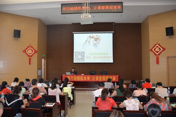 本次校本培训请来了上海思来氏公司的姚伟俊老师,他就未来学校的变革为全体教职工带来了一次新理念的洗礼。