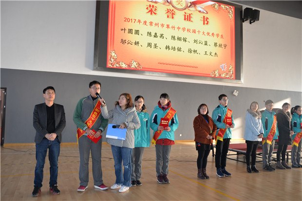 226日,常州市翠竹中学在虹景中学过渡校区的体育馆召开新学期开学典礼,“校园十大优秀学生”的评选活动在这里落幕颁奖。