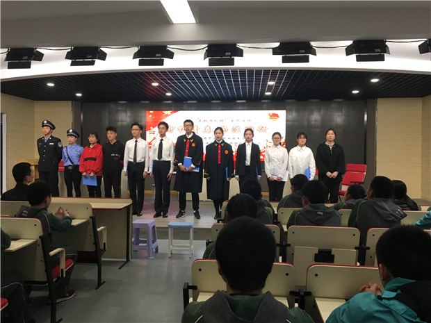 青年者,人生之王,惟知跃进,惟知雄飞,惟知自由之精神,奇癖之思想,敏锐之直觉,活泼之生命,以创造环境,征服历史。当代社会是一个法治社会,作为国家未来的小公民,我们应对知法懂法守法护法,提升法律素养。为此,我校团委有幸邀请到了来自旅游商贸学校的同学们,将带来省模拟法庭大赛金奖作品。表演是精彩的,立意是深刻的,希望同学们能培养法制意识,拥有法制精神,让法律为青春护航!