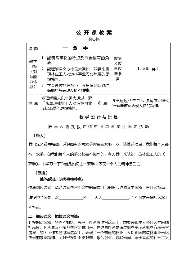 行动研究——裴志伟老师开设校际交流公开课教案