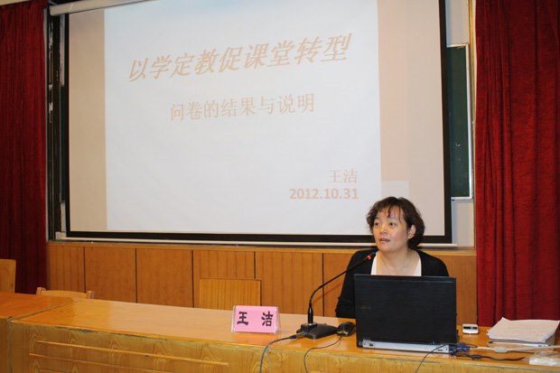 2012年10月31日下午,常州市翠竹中学全体师生在阶梯教室集会,认真听取了上海教科院普教所王洁博士关于“以学定教”课堂转型教师问卷分析的报告。推进“以学定教”的课堂转型是翠竹中学第三轮主动发展规划中的重点实施项目之一,也是与上课教科院普教所的合作项目。