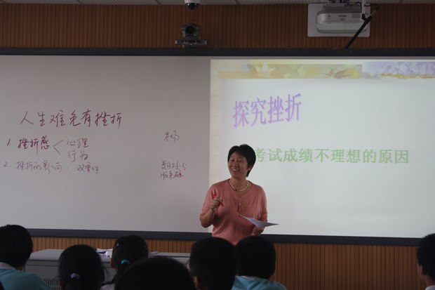 三位老师首先确定好课题《人生难免有挫折》,然后根据班级情况、学生学情分别设计了不同的教学环节,体现了不同的教学风格,是在同题异构基础上的同题重构,在备课时得到了王洁博士的专家指导,为了体现以学定教的特色,事先设计一份关于挫折的调查问卷,要求学生认真、如实填写。