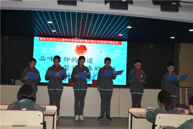 青青翠竹,拔节成长,莘莘学子,扬帆起航。上周,翠竹中学青年大学习之第41期少年团校正式开班。